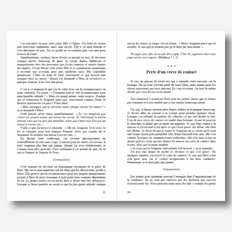 Merlin Carothers, un pasteur méthodiste, auteur des livres bien connus « De la prison à la louange » et « Puissance de la louange », nous propose ici 108 courts témoignages de personnes qui, après la lecture de ses ouvrages, ont mis la louange en pratique dans leur vie.
